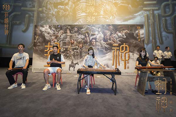 电影筹备及拍摄时,音乐团队前往河南博物院取经,很多演员也在剧组进行了音乐、乐器方面的培训。费翔为了殷寿的击鼓戏向陈世杰老师学习鼓乐三个月,以增加角色可信度。《封神三部曲》的后面两部中会有妲己弹奏古琴的戏份,娜然也因此认识并喜欢上了传统乐器古琴,从进剧组跟随心一老师学习古琴至今,她表示“古琴会让我感觉到很安静,我现在弹古琴是为了冥想,我非常喜欢”,随后也登台弹奏了古琴曲《神人畅》,古朴悠远的琴音令人心旷神怡。于适、侯雯元、黄曦彦在封神演艺训练营期间都向陈世杰老师学习过鼓乐,于适透露“为了培养我们古代战士的那种气质,每一周都有鼓乐课”,三人随即分别上台展示了鼓乐训练成果,动作有板有眼,气势十足。费翔和黄渤两位前辈给予了年轻演员们充分的肯定,赞叹他们“台上一分钟,台下十年功”的刻苦训练非常不易。演员们的每一分努力和用心,都将融入到他们对角色的塑造当中,相信观众走进电影院也一定能感受得到。
