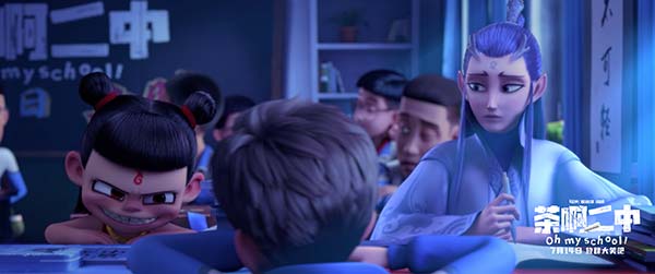 短短两分钟短片,埋梗不断、反转不断!魔童哪吒与差生王强成为同班同学,以两人逃课上网吧展开,与暴躁班主任石老师斗智斗勇。天地不怕的魔童,在人间校园规则面前,还得王强带。仅从短片便能看出《茶啊二中》主创团队不一般的喜剧能力!对于本次合作,《哪吒之魔童降世》制片人刘文章谈到,“2019年哪吒在大家的呵护下打破成见,希望《茶啊二中》能再次打破动画喜剧的成见。”并在首映观影后表示看到主创的真诚与勇气,“原创动画很难,原创喜剧动画更难,从创作者的角度看故事非常扎实,完成非常高!”