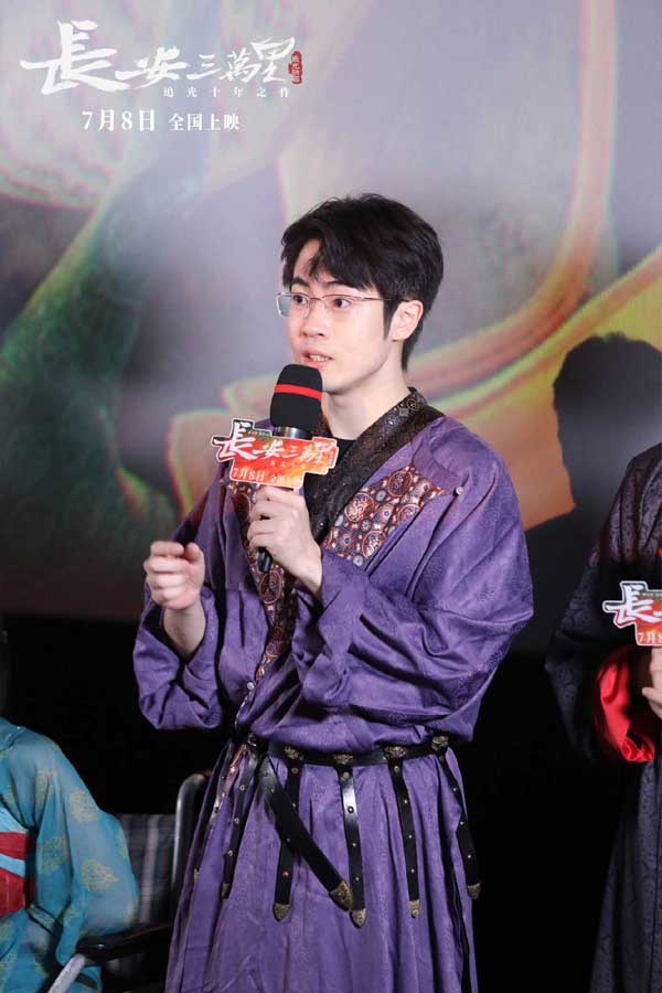 值得一提的是,影片配音指导兼青中年高适配音演员杨天翔也向现场观众表达了自己对电影的理解“这部电影能让我们感受到千年之前的古人给咱们留下的由诗文组成的无尽山脉”,而片中青中年李白的配音凌振赫则表示“唐朝确实是华夏大地风雨千年的永恒传说,也是华夏文明照耀世界的第一缕光,十分感谢《长安三万里》带我们完成了一次追光之旅。”片中程监军的配音卢力峰向大家推荐电影时说道“影片故事如同图卷一样展开,最后留在我的心中的只剩一个词:浪漫,希望大家观影后能将这份浪漫传递给更多人。”