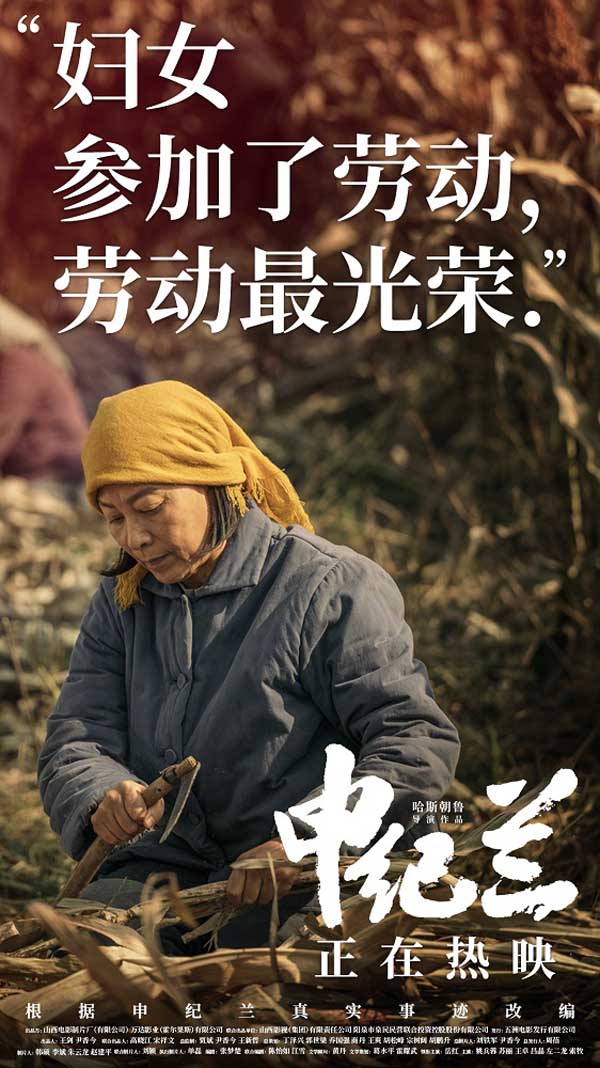 通过6张海报画面,电影《申纪兰》向观众展现了影片中最重要的几个情节,同时也是申纪兰生命故事中众多值得歌颂、学习的事迹代表。1951年,申纪兰带领同村女性干农活、挣工分,推进男女同工同酬;1984年的冬天,当了10年省妇联主任的申纪兰,向组织发出返回西沟,下地参与劳动的书面申请,而后在漫天的大雪中,毅然决然踏上返回西沟之路;2020年,91岁的申纪兰身患重疾,仍坚持最后一次参加全国人民代表大会,在大会上的发言心系人民、坚决为公,提出对脱贫攻坚、乡村振兴等“三农”话题的关心。