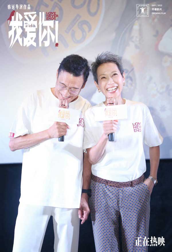在浙江传媒学院的映后现场,学生们经久不息的掌声与欢呼声让两位主创倪大红、惠英红纷纷感叹这些炽热的年轻力量。在场的同学热情十足,踊跃举手发言表达自己看完电影后最深切的感受:“何其有幸能来到人世间、何其有幸我与大家一起观影、何其有幸我爱你!”。倪红灯cp现场默契互动,与学生情侣学习当下流行的情侣拍照pose,两人连连展示花式比心pose,尽显“热恋“中的亲密与幸福;在现场,惠英红坦言表示,在现实生活中如果遇到爱情自己会选择主动出击,勇敢表达我爱你!这样的勇气与甜蜜传送给在场的每一位观众,更唤醒在场的每一个人都能像老常和如姐一样“表达爱、拥有爱、勇敢爱”!