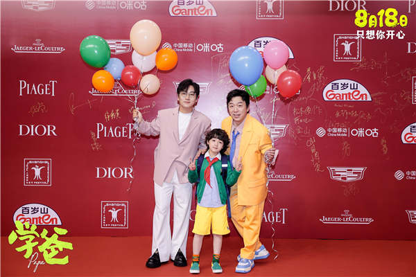 在红毯的采访环节,黄渤被问及在拍摄电影《学爸》的过程中有哪些收获时,他坦言通过拍摄这部“鸡娃”的现实题材电影已经让自己体验了很多为人父母的过程, 同时也将自己对生活的感悟融入到了《学爸》这部电影里。站在黄渤身边的单禹豪胸前佩戴着红领巾、身后背着小书包,直观地诠释出他在影片中面临着升学压力,在现场被黄渤连连夸赞演技非常棒,期待观众看到单禹豪在影片中的精彩表现。
