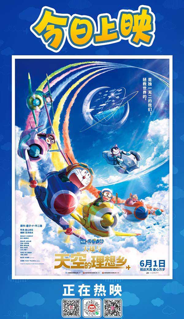 动画电影《哆啦A梦:大雄与天空的理想乡》由日本SHIN-EI动画株式会社出品,中国电影集团公司进口,中国电影股份有限公司发行、译制,将于今日全国上映,影片正在热映中,六一就要看哆啦,儿童节快来影院和哆啦A梦一起开启全新的天空冒险之旅吧!