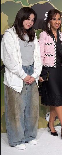 她的裤子从远处看就像脏了一样,衣服设计感十足,只不过在合影环节并不出众。