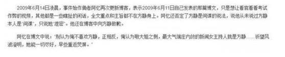 虽然在观众心中,方静始终是一位称职,有个人魅力和独特风格的主持人。