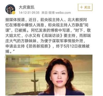 一位名为阿忆的北大教授,居然发文称方静是“间谍”,而且已经被捕。