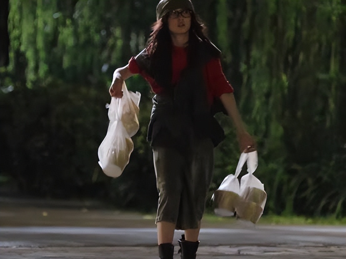 张子枫跌跌撞撞,从白天排队到黑夜,一个人拎着一大堆打包的面条走了回来。