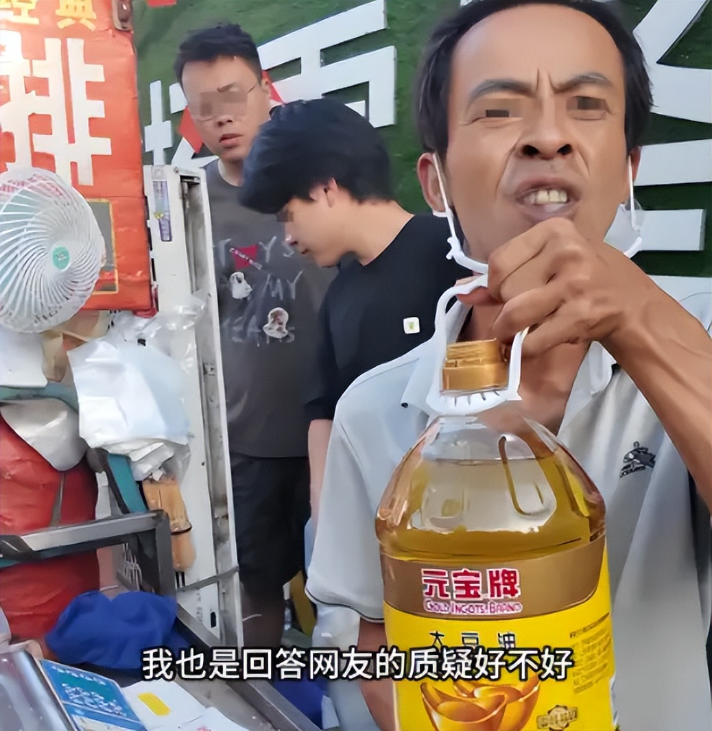 在众人围观的鸡排摊,他拿出了自己一直使用的大豆油。