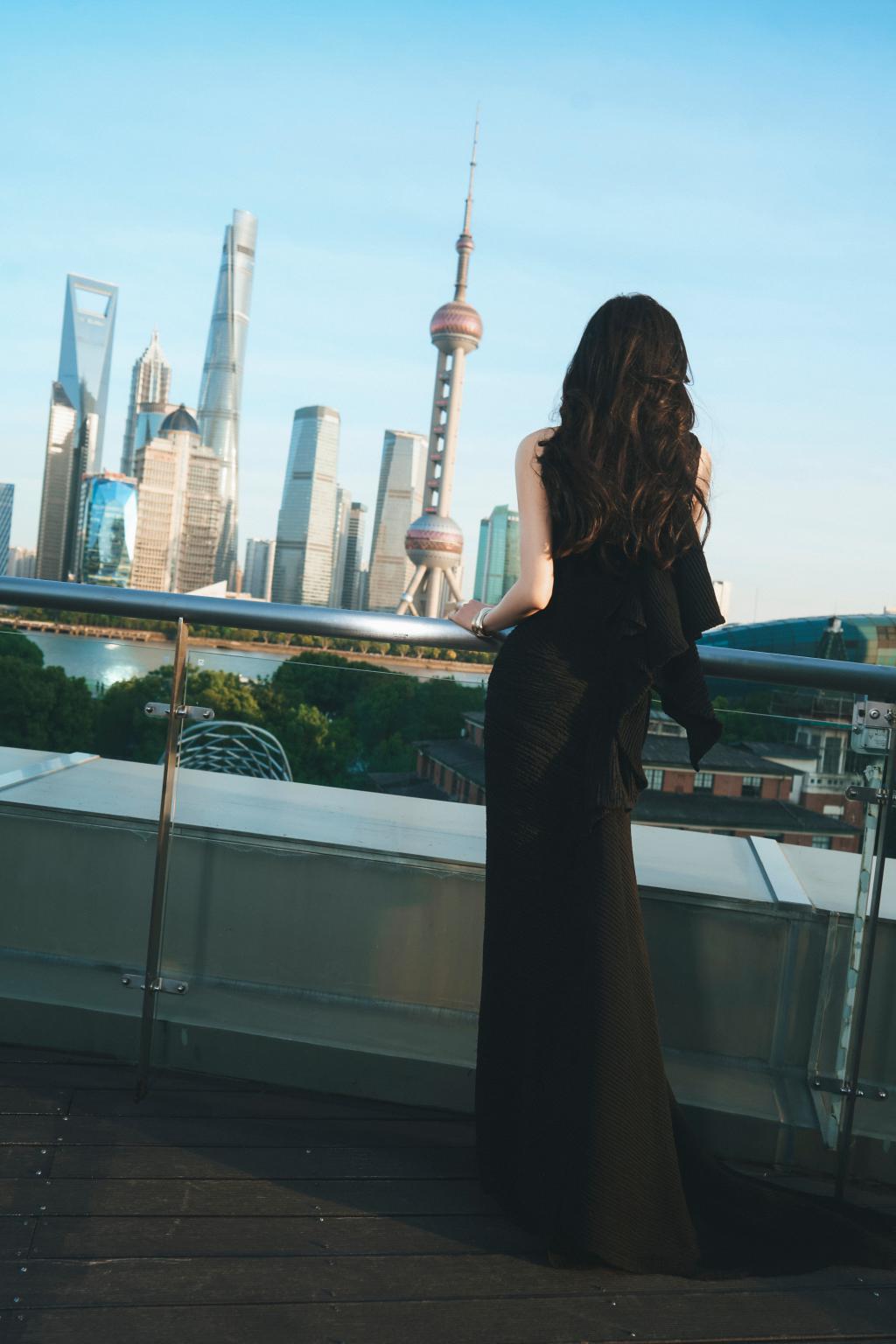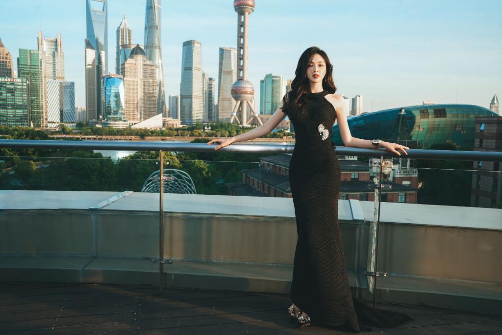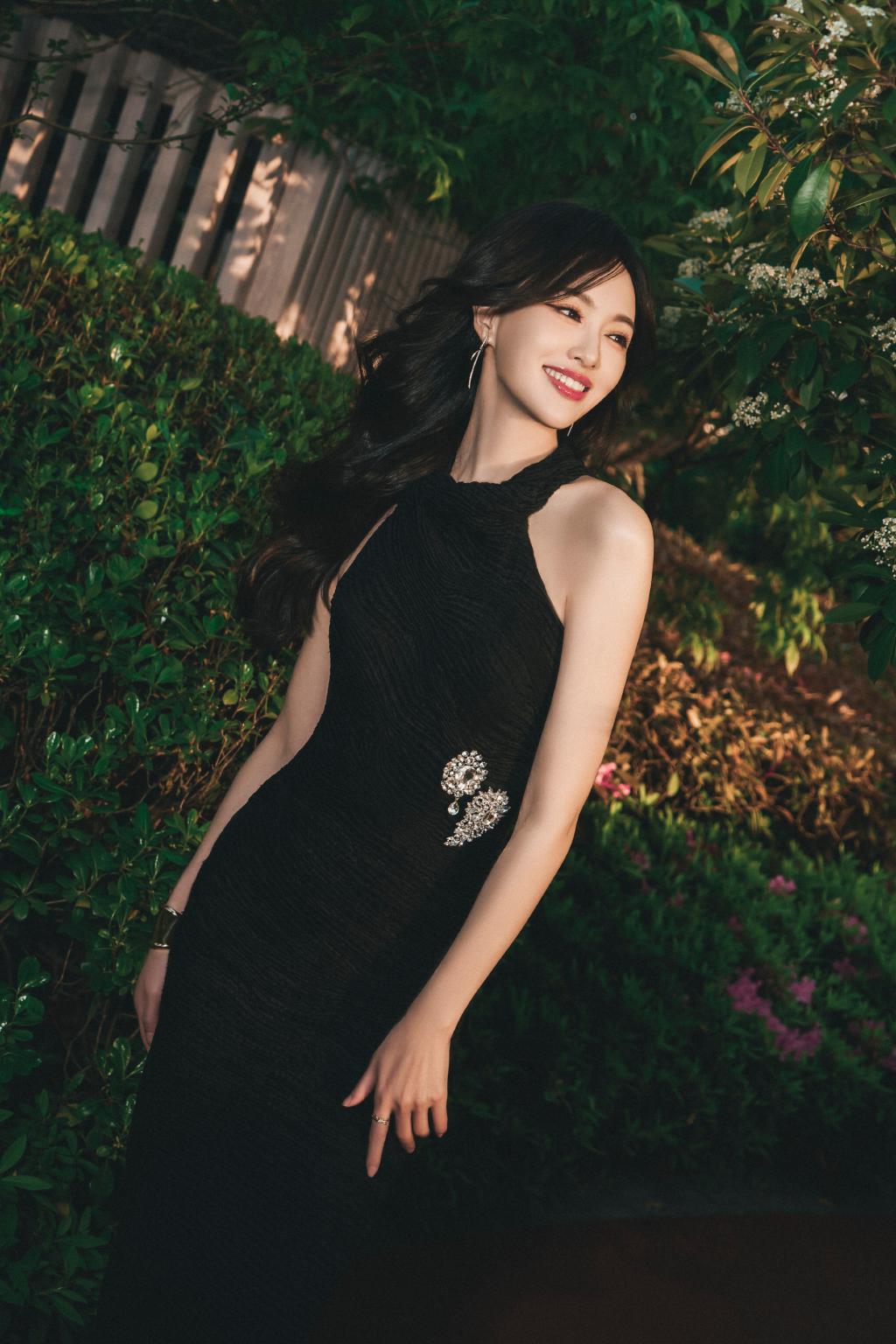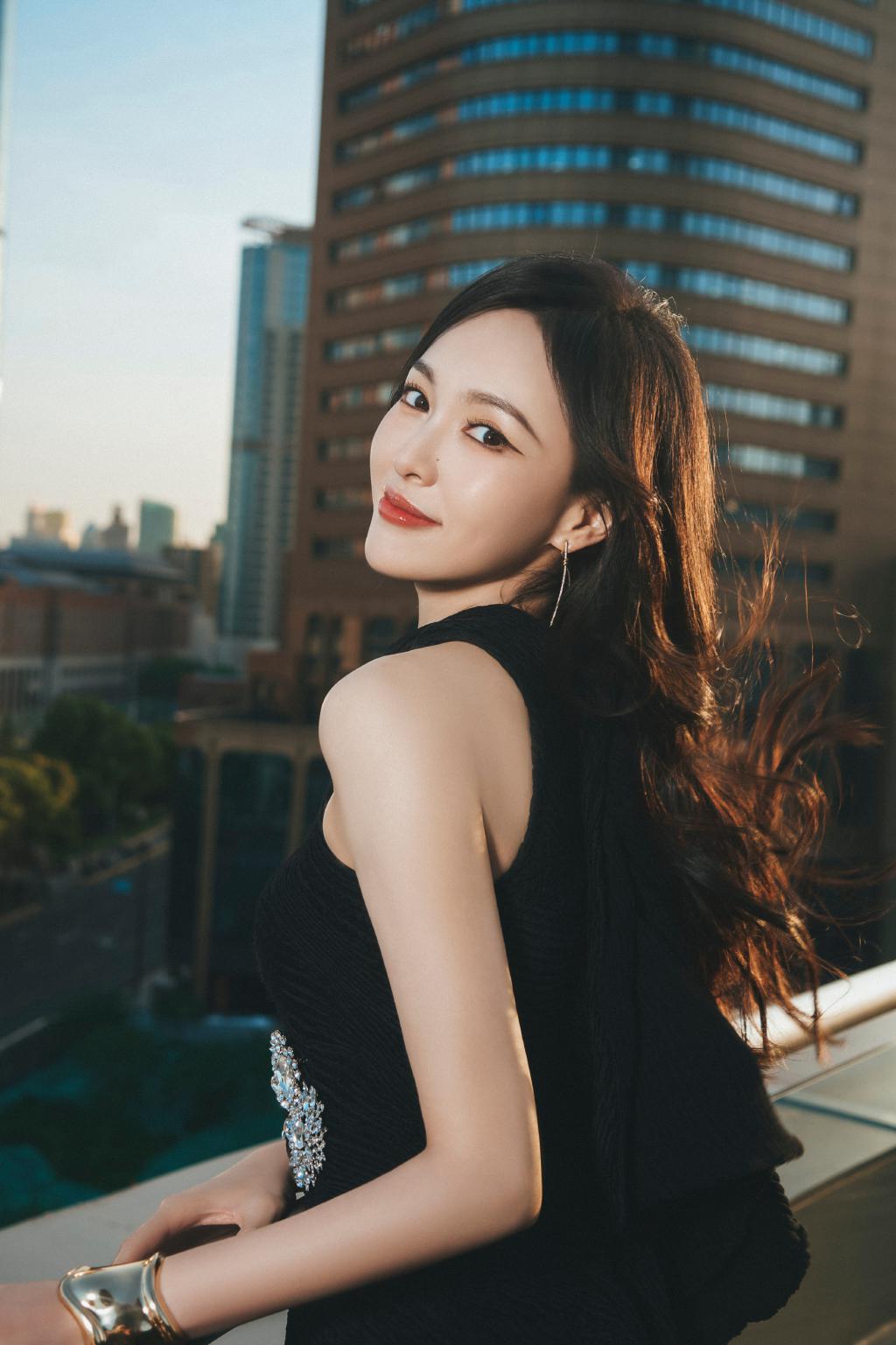 唐嫣穿挂脖黑色长裙 明媚张扬优雅迷人