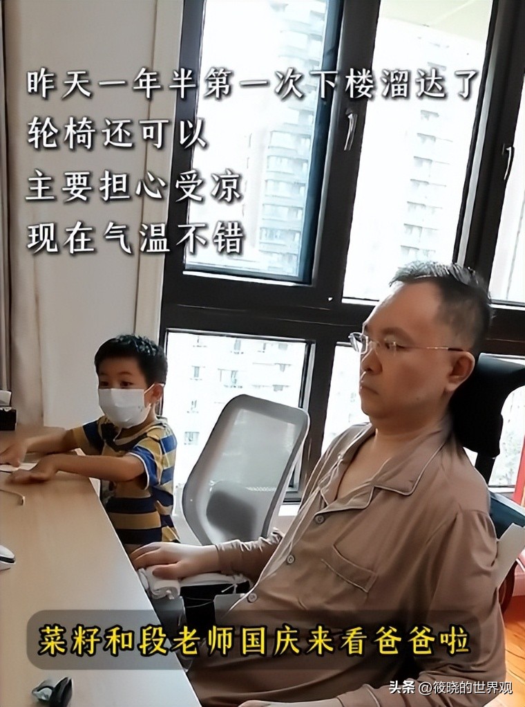 没想到这才过去多久,他居然都坐轮椅下楼了,还在国庆和儿子来了个亲密互动。