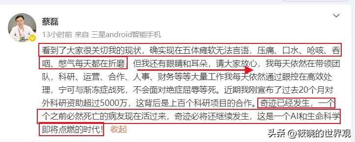 蔡磊用眼控仪敲出6个字,告诉大家“奇迹已经发生”,并在国庆节迎来了好消息!