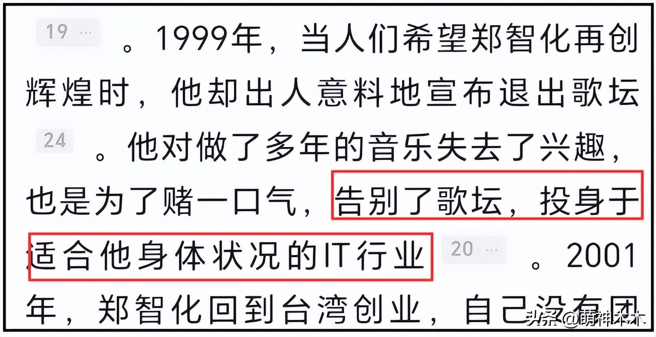 郑智化作为残障歌手,早年确实凭借《水手》、《星星点灯》等作品在两岸三地走红。1999年,郑智化选择退出歌坛,投身IT界创业,最后失败告终。