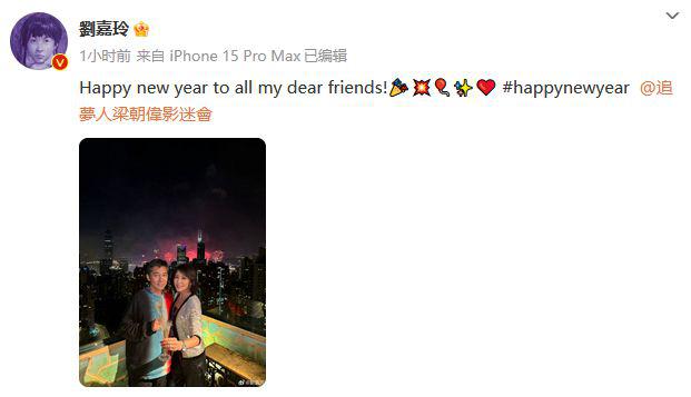 2024 年 1 月 1 日,刘嘉玲在自己的个人社交账号上晒出了她跟梁朝伟的合照,并配文道:"happy new year to my dear friends! "