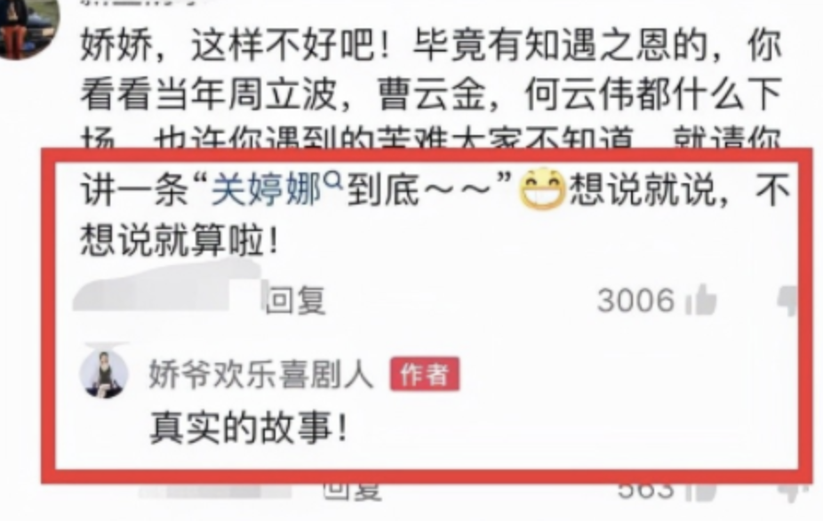 有网友在直播间好奇询问关婷娜和赵本山的关系,没想到张玉娇直接回复:“真实的故事”,之后这条评论就被删除了。