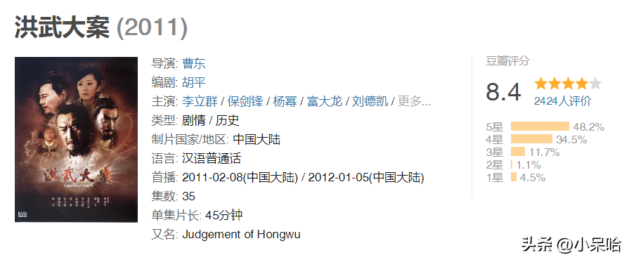《洪武大案》这部剧,聚集了非常多的优秀演员,以五个各自独立又环环相扣的故事组成,用快速讲故事的节奏解开连环贪腐的谜题,每个单元都有令观众意想不到的贪污方式,对探案人员的陷阱和圈套更是五花八门。不同于大部分古装剧,该剧从服道化到行政级别等细节,都很考究,尊重历史。