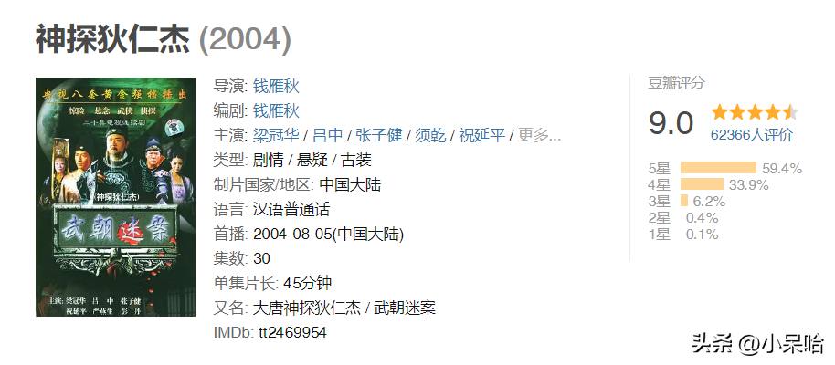 说实话,以国产剧追求经济最大化的一贯套路来看,能拍第二季的都少之又少,《神探狄仁杰》整整拍了4季。悬念迭出的剧情、缜密的推理判断、精彩的人物对白、经典的“元芳,你怎么看”,都紧紧地抓住了观众的心,探案中又夹杂着权力博弈,非常耐看的好剧。