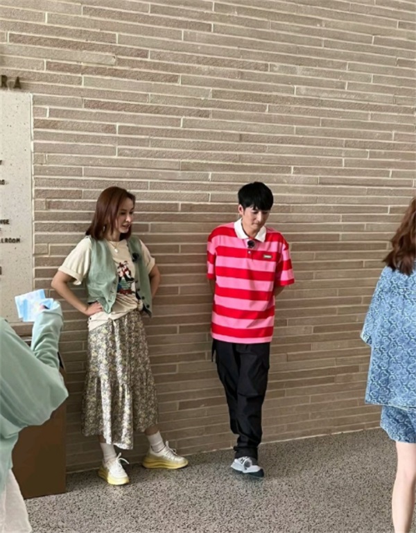 吴昕身穿白色T恤搭配碎花裙,头戴大檐遮阳帽,一身装扮青春活力十足。李维嘉则身穿红粉条纹T恤搭配黑色工装裤,和昕妹一样,造型休闲。