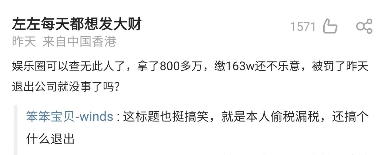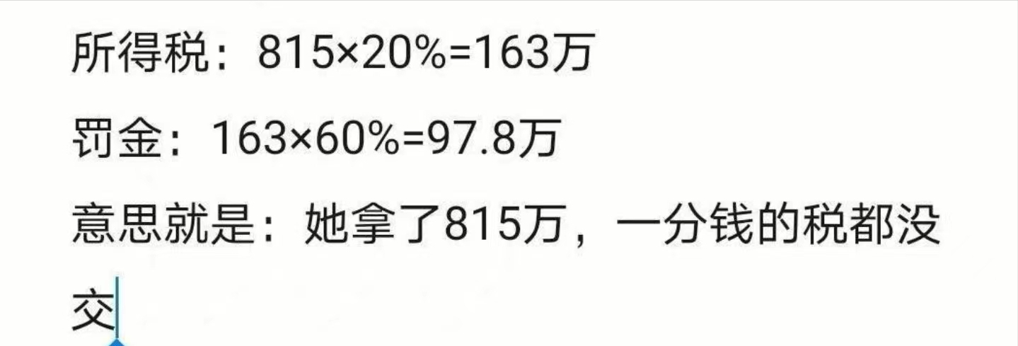 不过税务问题跟金额多少其实没多大关系,哪怕逃税一块钱,法律和道德上的问题都是一样的。