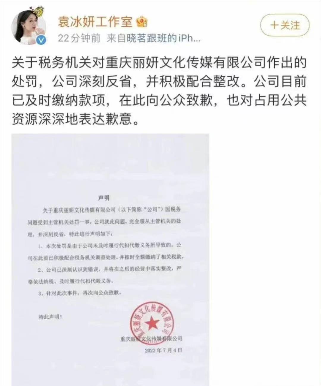 而且我觉得袁冰妍已经努力在做了,因为在媒体通报袁冰妍公司税务问题前,袁冰妍已经开始“脱离”公司。