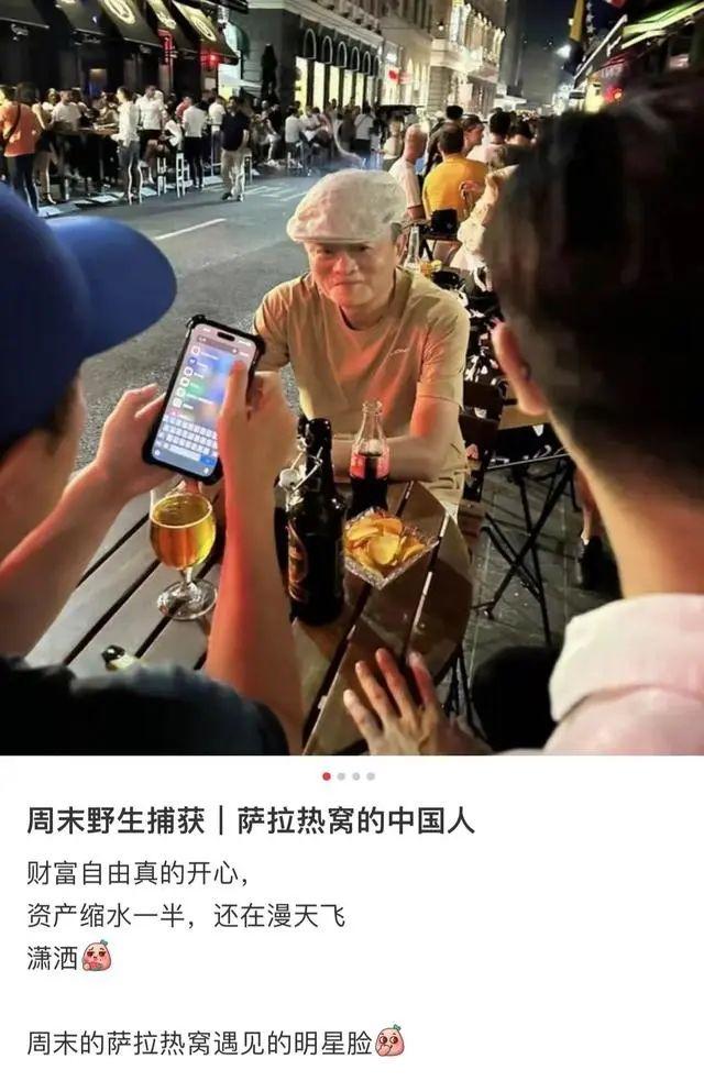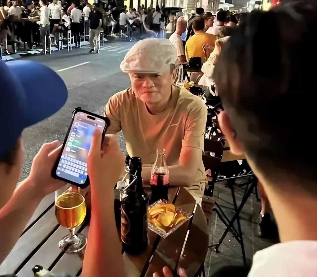 马云坐在马路边,一边和朋友聊天,一边悠闲地享用啤酒,这种接地气的举动让人印象深刻。