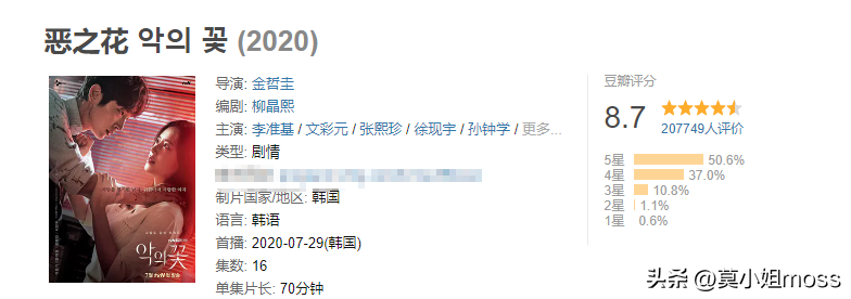 李准基和文彩元主演的悬疑剧《恶之花》是2020年的一部爆款剧,同时糅合惊悚、犯罪、爱情、治愈等多种元素,在豆瓣上拿到8.7分。