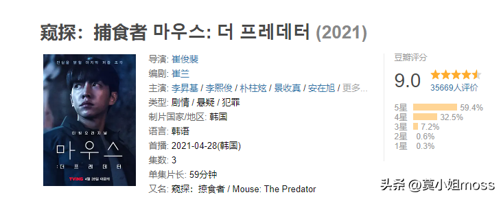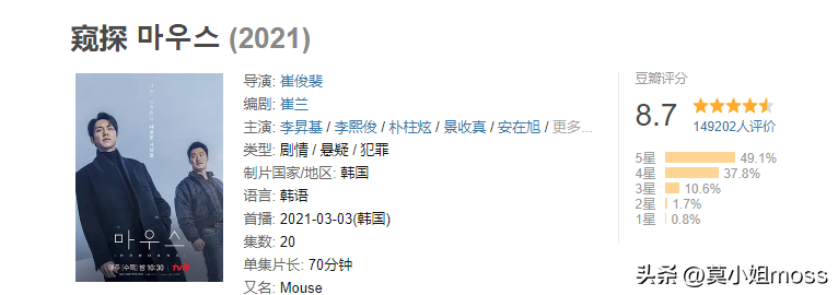 由李昇基、李熙俊等人出演的《窥探》系列上映于2021年,是一部高分悬疑犯罪惊悚剧,在豆瓣上17万人打出了8.7分和9分。