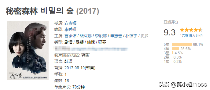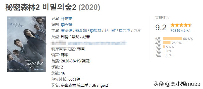 《秘密森林》系列是相当不俗的作品,第一季与第二季都是裴斗娜、曹承佑主演,豆瓣评分为9.3分与9.2分。