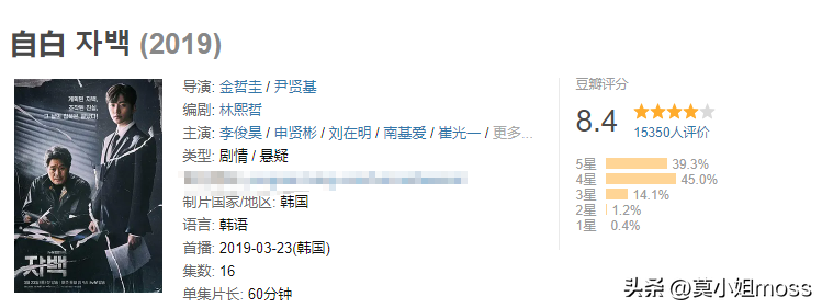 《自白》是由金哲圭、尹贤基执导,由李俊昊、刘在明、申贤彬、南基爱主演,豆瓣评分为8.4分。