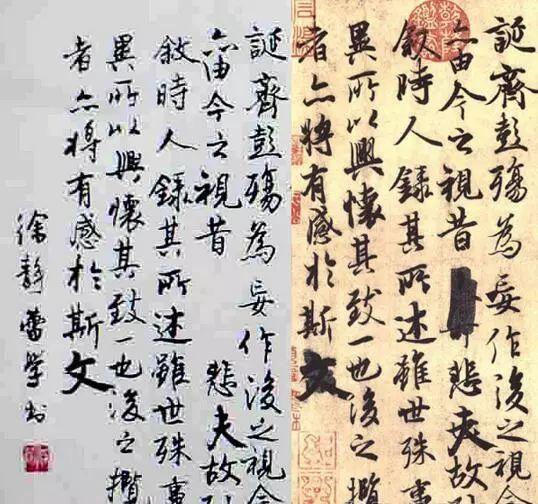 徐静蕾非常喜欢王羲之的书法,曾经临摹过多次《兰亭集序》,其中有一幅临得相当不错,从用笔到结构颇有几分神韵。