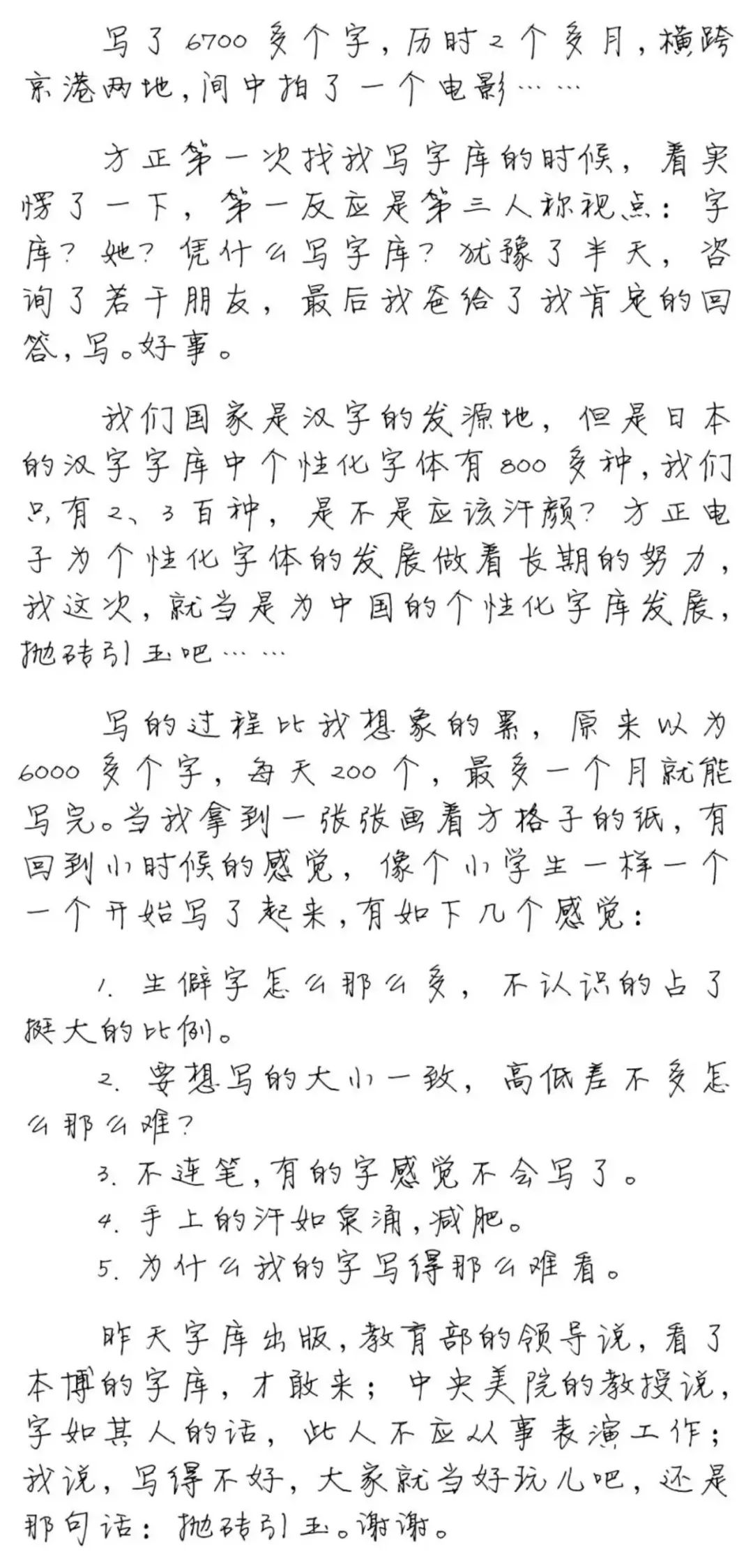(徐静蕾写“方正静蕾体”时的感悟)