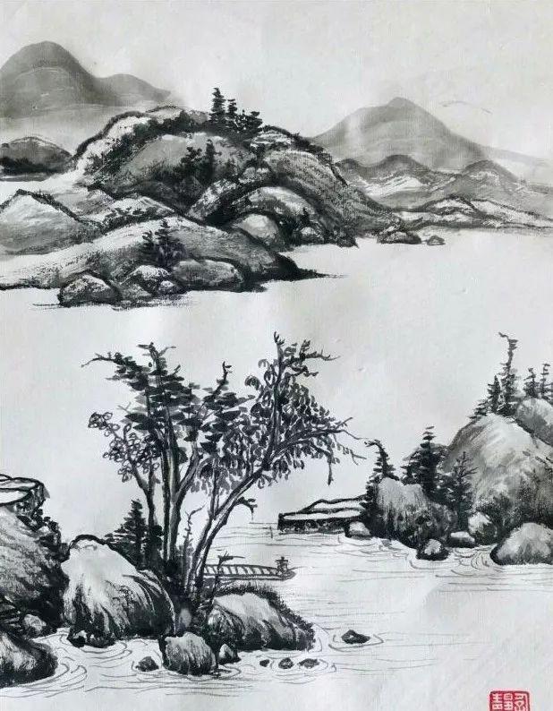 就拿画山石来说,为了掌握不同的画法,徐静蕾可以说是没少下功夫。具体到怎么用笔,怎么构图,她分门别类的一一临习。