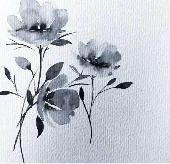 凭着多年的书法功底的,她画出的线条自然秀美多姿,并且在墨色方面也有很好的表现。