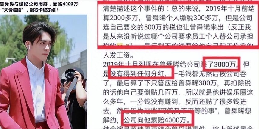 可前提是他不仅需要承担个人的税务,就连公司的税务也需要他一并承担,这样一来,曾瞬晞拿到的分成还不够他交税,甚至还需要自己倒贴。