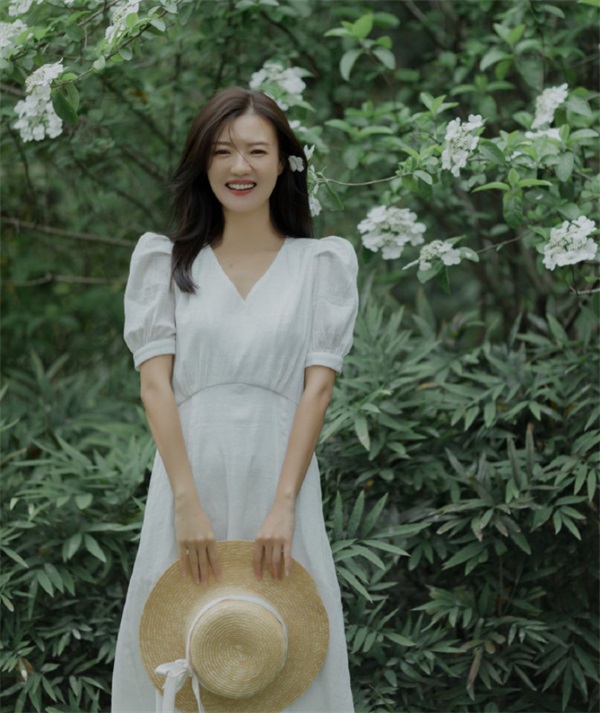 一袭白裙的她明亮的像个少女一样,一点看不出岁月在她身上留下的任何一点痕迹。
