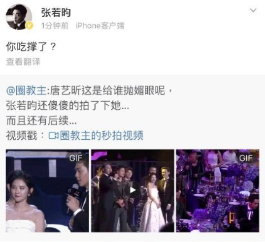 作为男友的张若昀面对女友被记者故意抹黑时,他也会霸气护妻,直言“你吃撑了”。