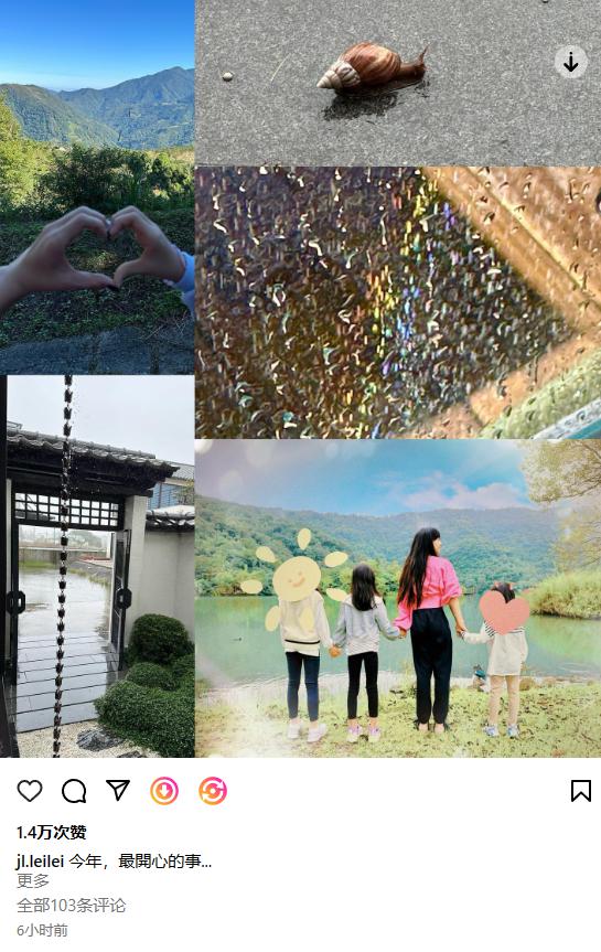 李靓蕾在文中分享了与子女的四人合照,虽然是背对镜头,但可以看到笑容满面,总之是笑到了最后。